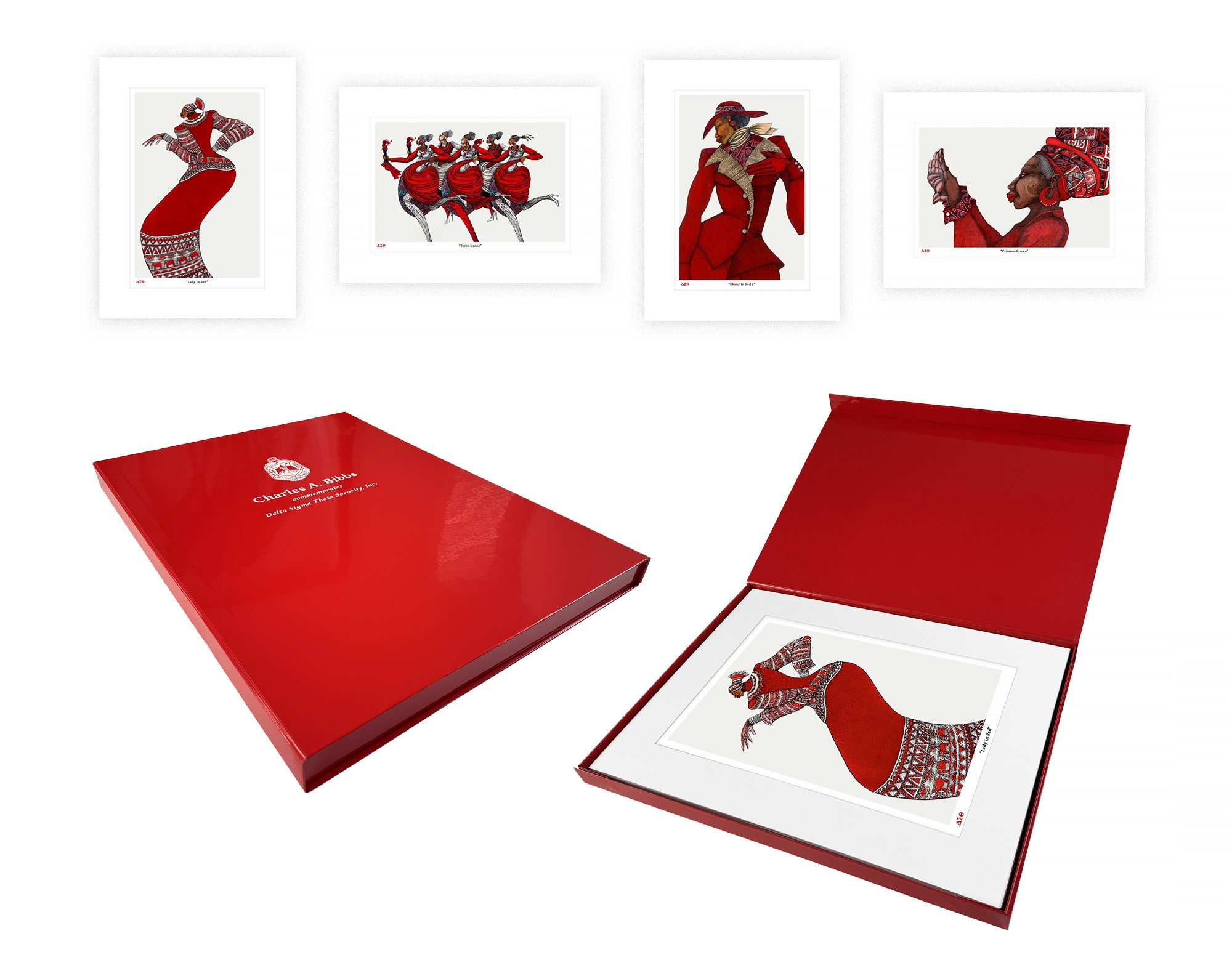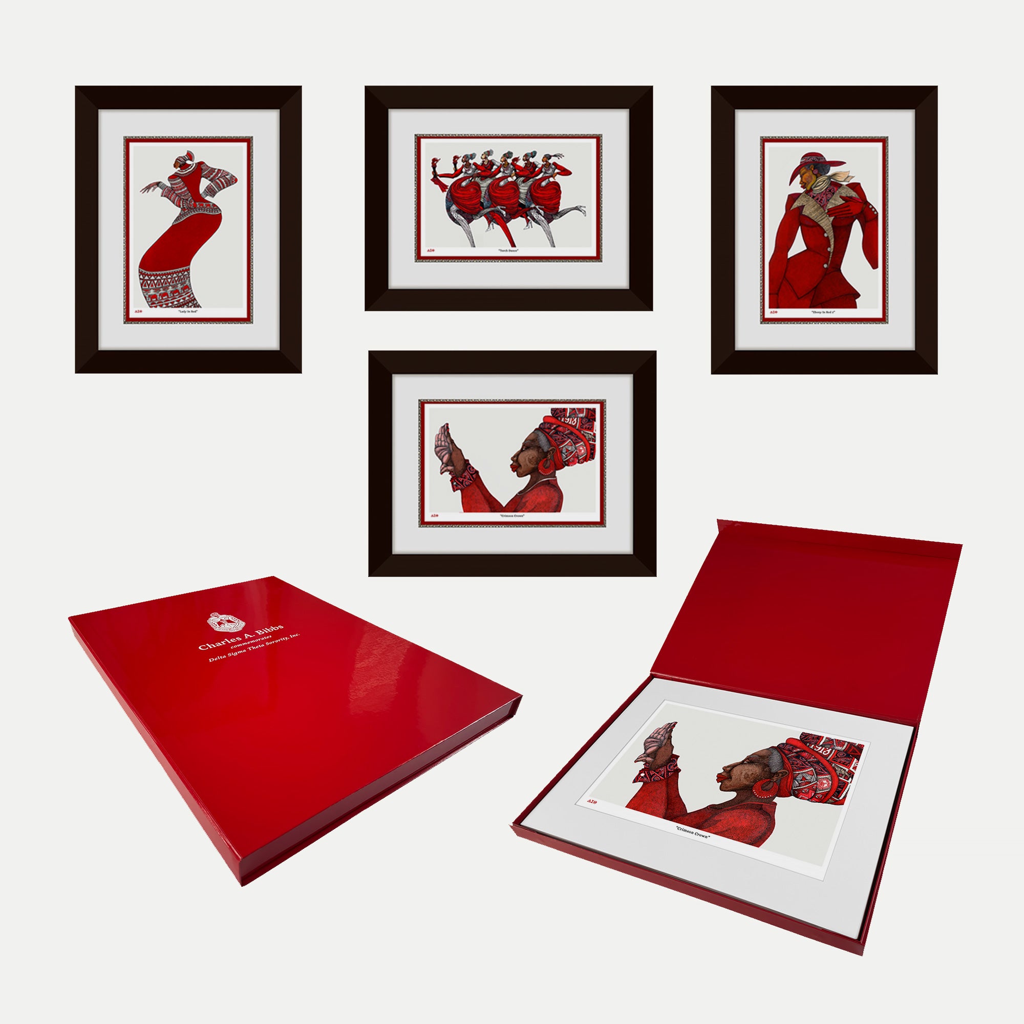 This elegant presentation is housed in a glossy red collector’s box, stamped with the official DST crest. Inside are four 18" × 24" signed and numbered mixed-media fine art prints, each inspired by beloved works from past Charles Bibbs creations.